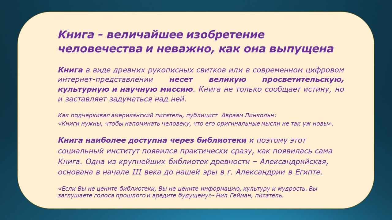 С днём библиотек! Новая роль библиотек: виртуальная книжная выставкаУважаемые подписчики и гости нашего сайта!Дорогие читатели, коллеги, друзья! Надеемся, что представленная информация будет вам полезна.